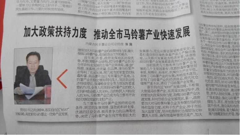 張國表示,民豐薯業(yè)將堅定貫徹總書記講話精神,落實自治區(qū)“8337”發(fā)展戰(zhàn)略,充分發(fā)揮龍頭企業(yè)帶動、幫扶作用,為推動我市馬鈴薯產業(yè)快速發(fā)展做出新貢獻。